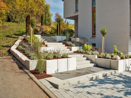 Mauern und Stufen geben Ihrem Garten Struktur und Charakter. Ob aus Naturstein, Beton oder anderen Materialien – wir gestalten funktionale Elemente, die zugleich optisch überzeugen.