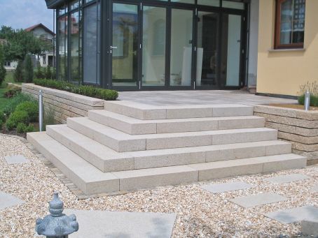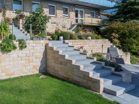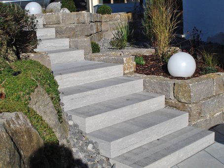 Stufen aus Naturstein wie Sandstein, Granit, Muschelkalk oder Schiefer bringen Struktur und Ästhetik in Ihren Garten. Sie überzeugen durch ihre Robustheit, Langlebigkeit und die natürliche Optik, die sich harmonisch in jede Umgebung einfügt.