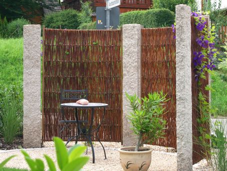Sichtschutz aus Naturstein wie Granit oder Schiefer verbindet Design und Funktion. Ebenso sorgt Sichtschutz aus Holz für natürliche Wärme und Gemütlichkeit im Garten.