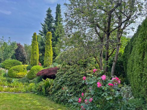 So bildet er den sanften Rahmen, in dem Beete, Sträucher und Blumen ihre volle Wirkung entfalten können.
