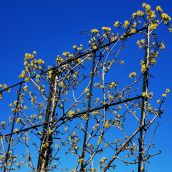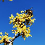Unzählige kleine, gelbe Blüten erscheinen oft schon ab März an den Zweigen. Die robuste Kornelkirsche ist ein Frühblüher, der wertvollen Nektar für Bienen liefert und im Herbst sogar rote Früchte trägt.